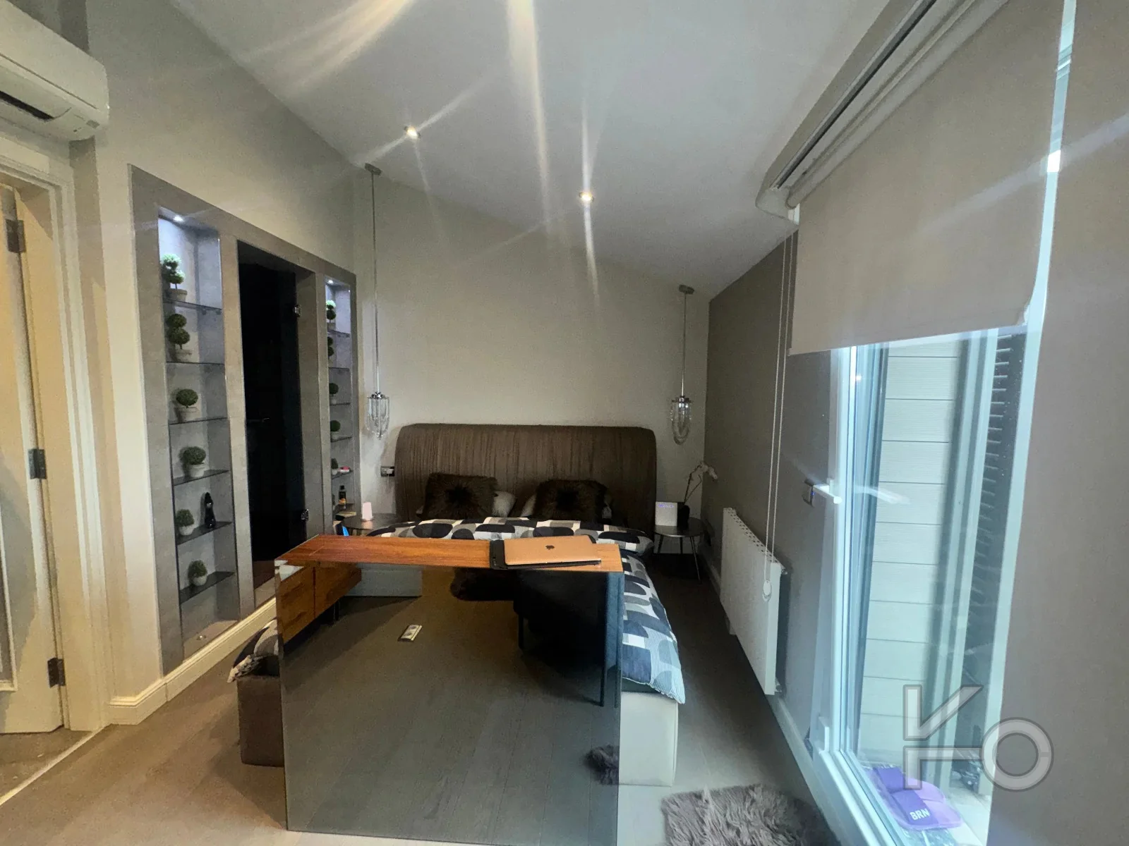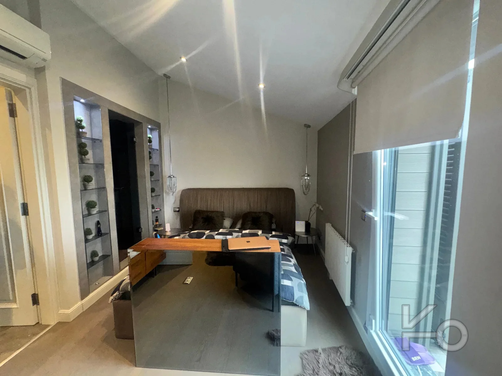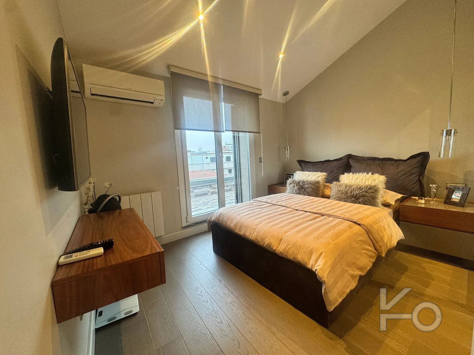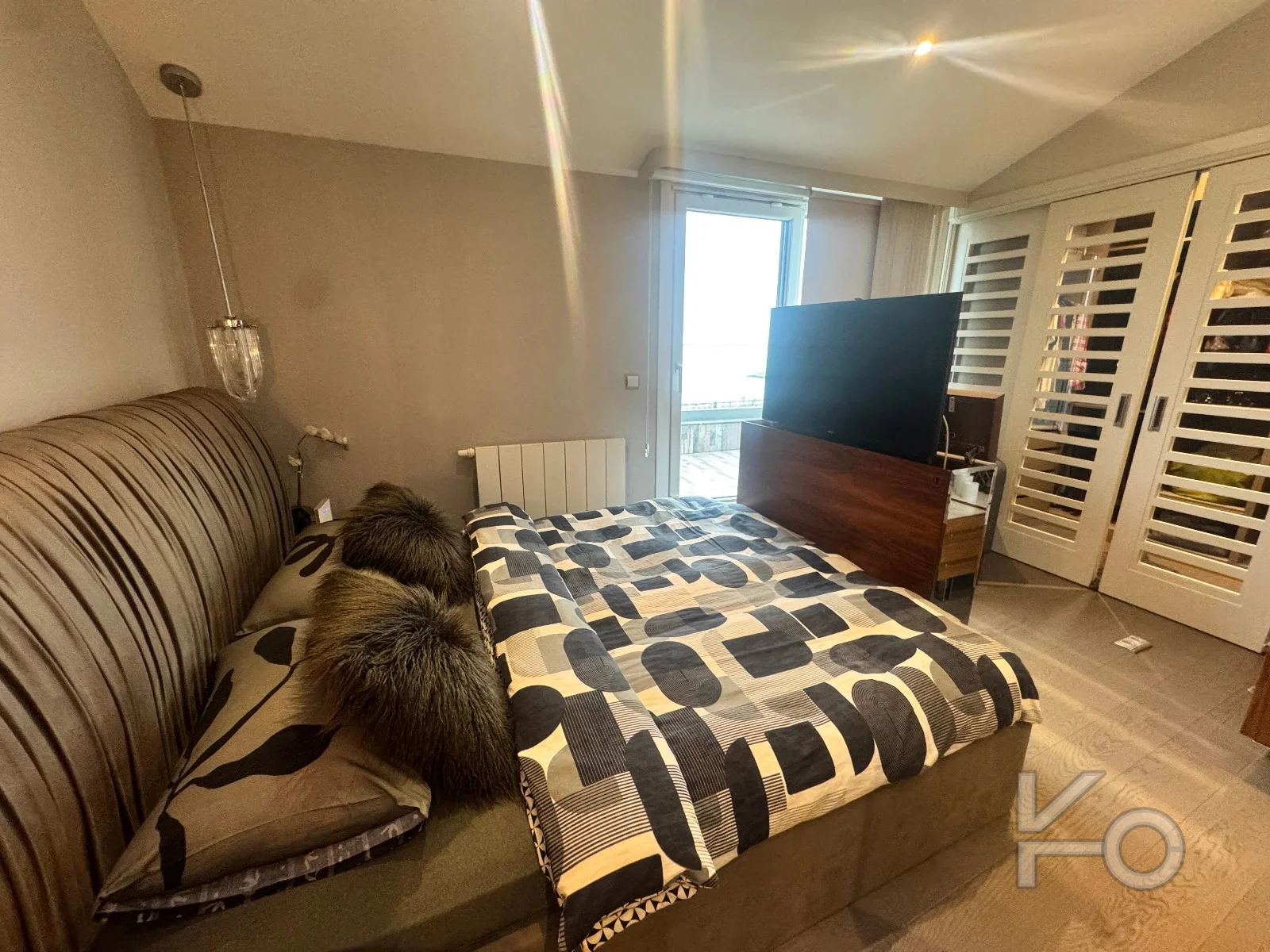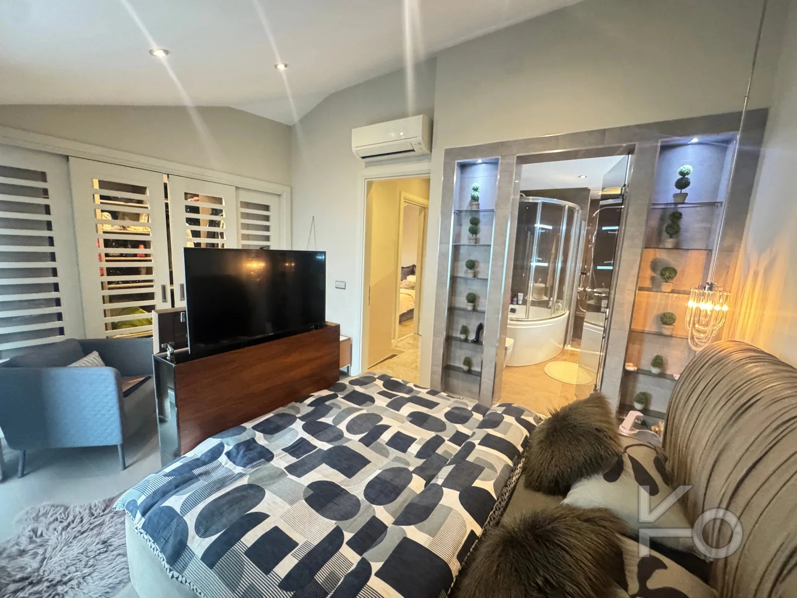 Ebeveyn yatak odasında asansörlü TV ünitesi