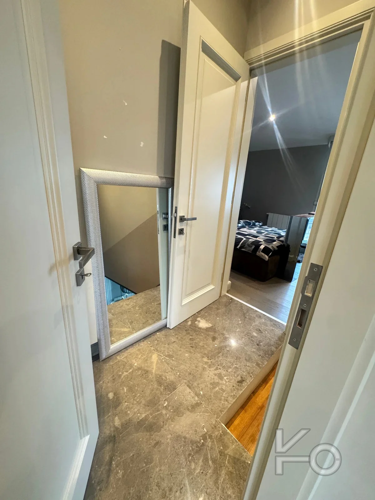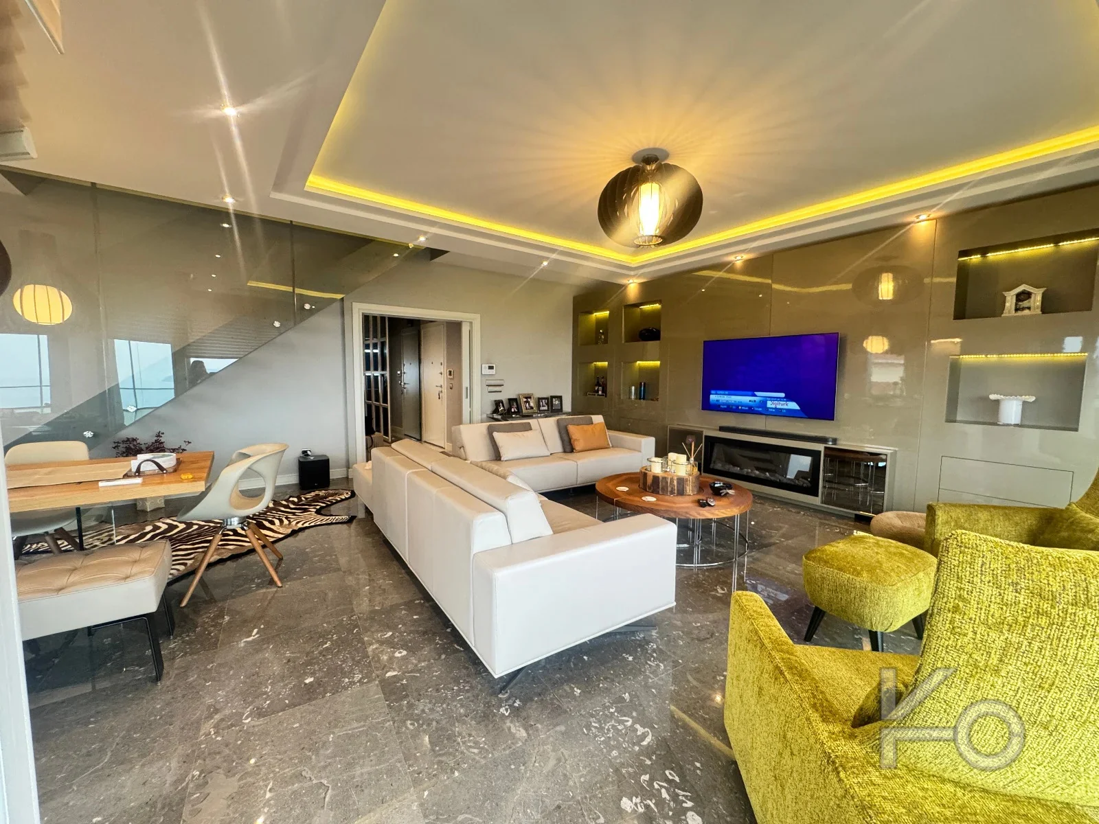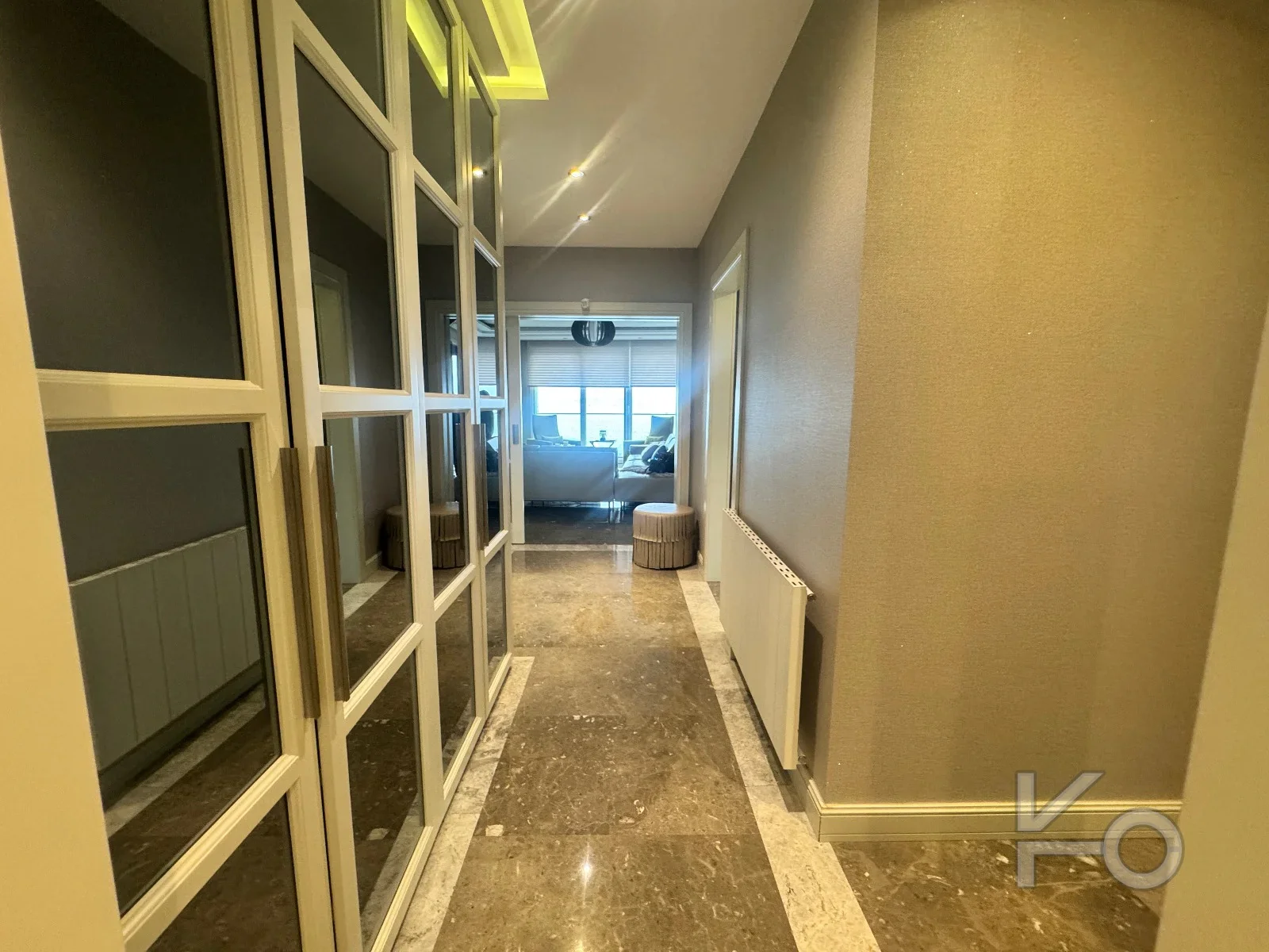 Salon zeminleri mermer kaplama, odalar parke