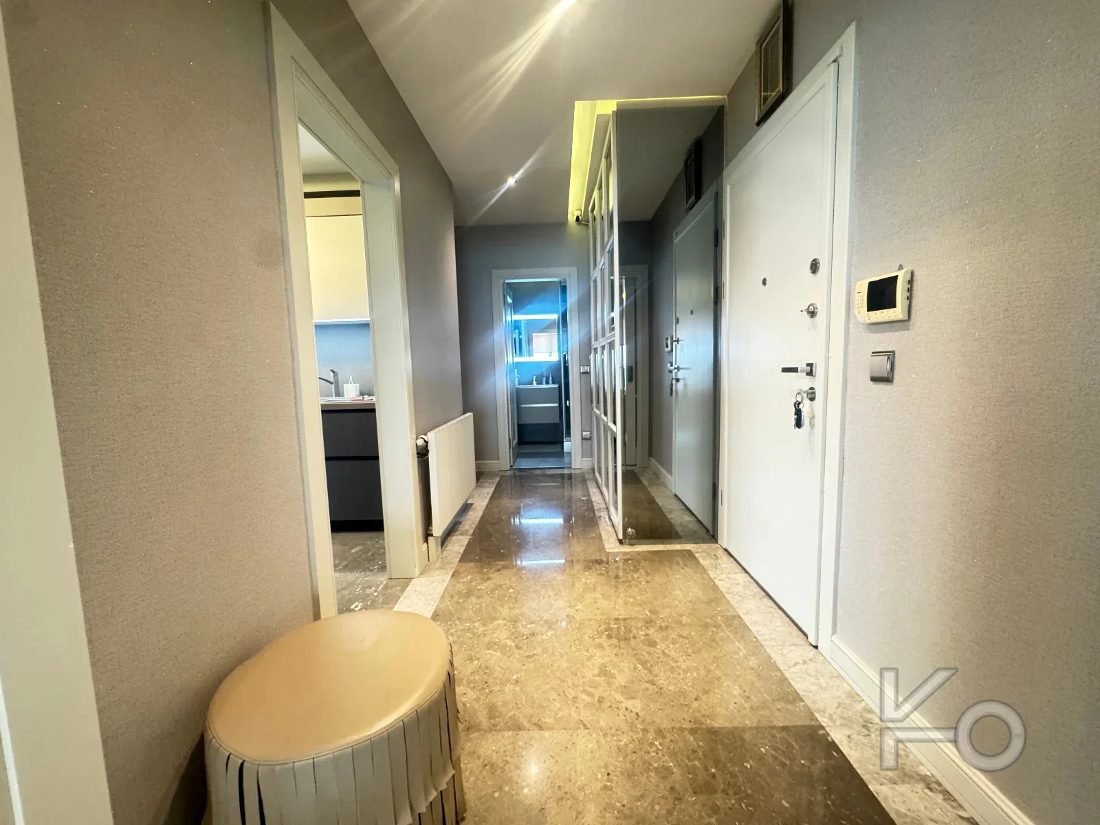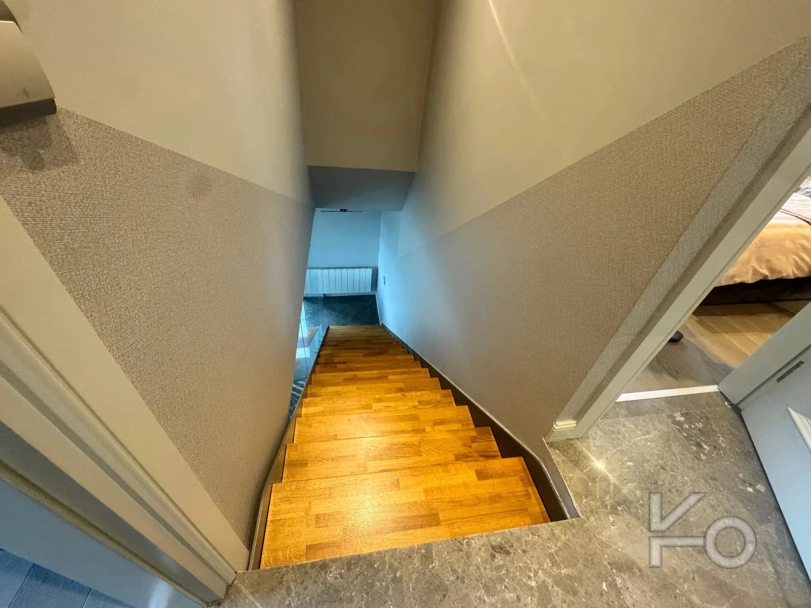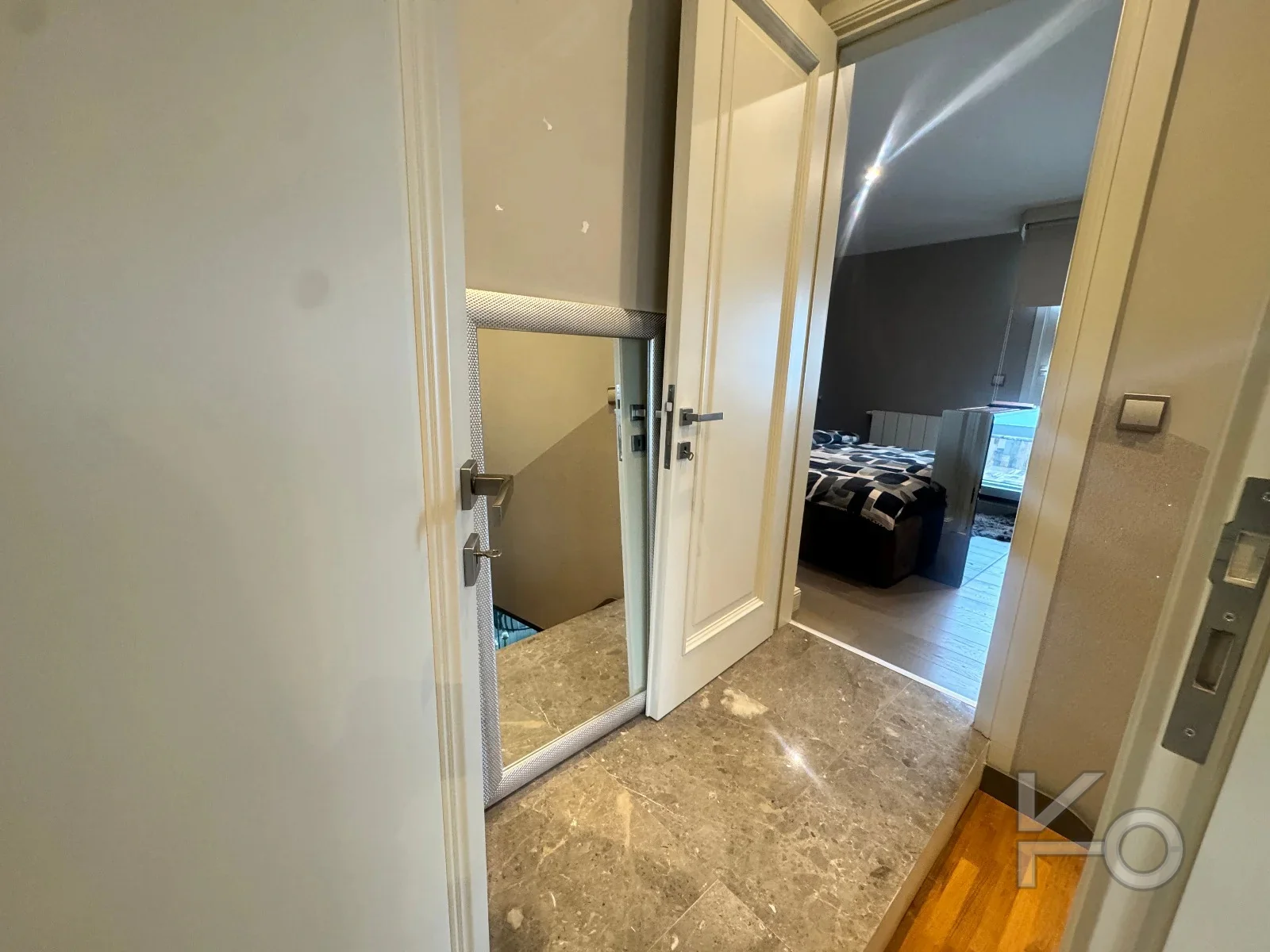 Salon zeminleri mermer kaplama, odalar parke
