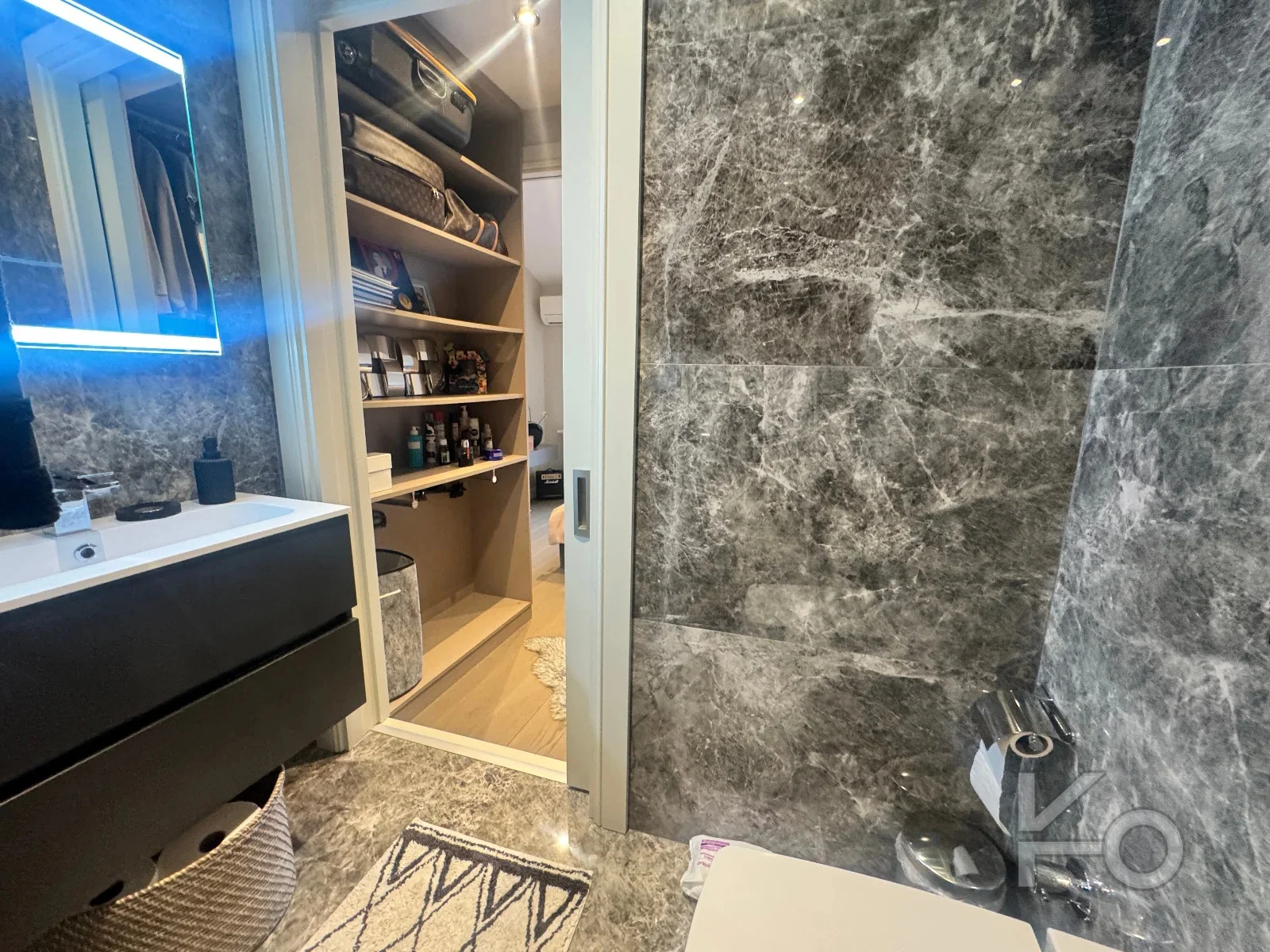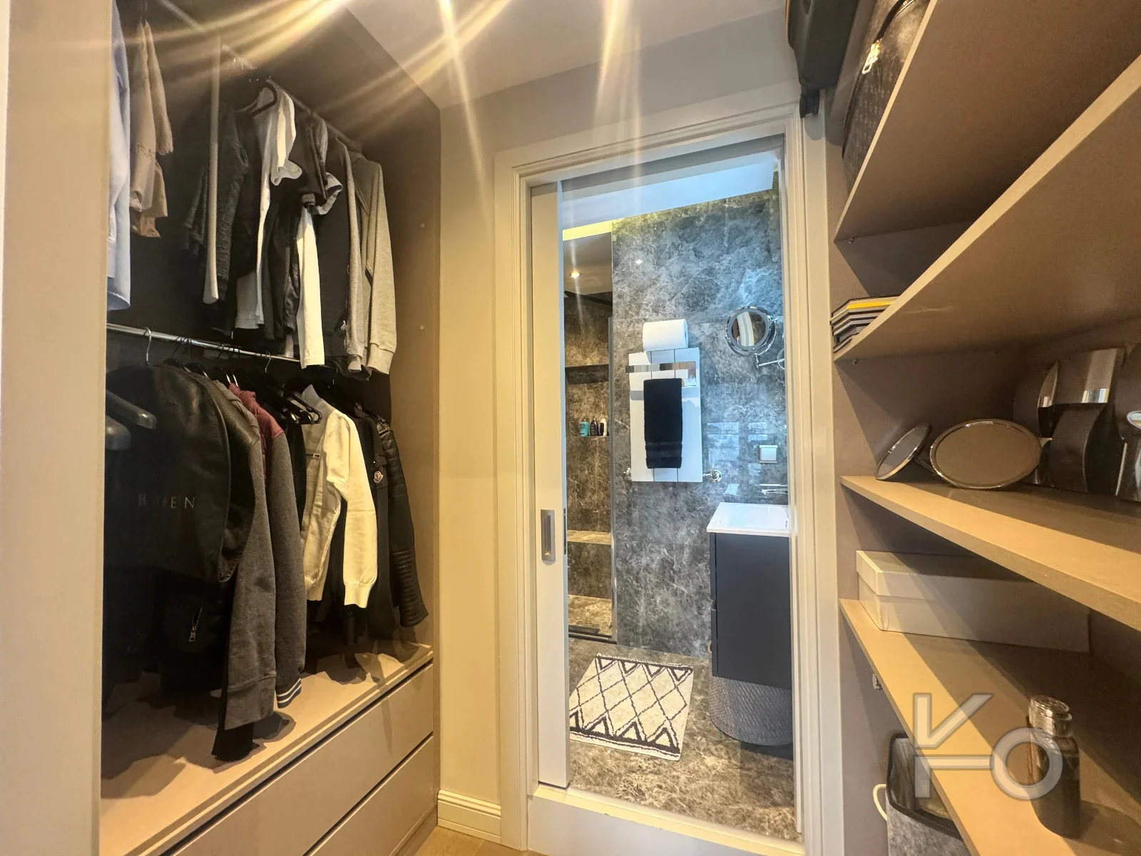 2 odada ebeveyn banyosu ve giyinme odası