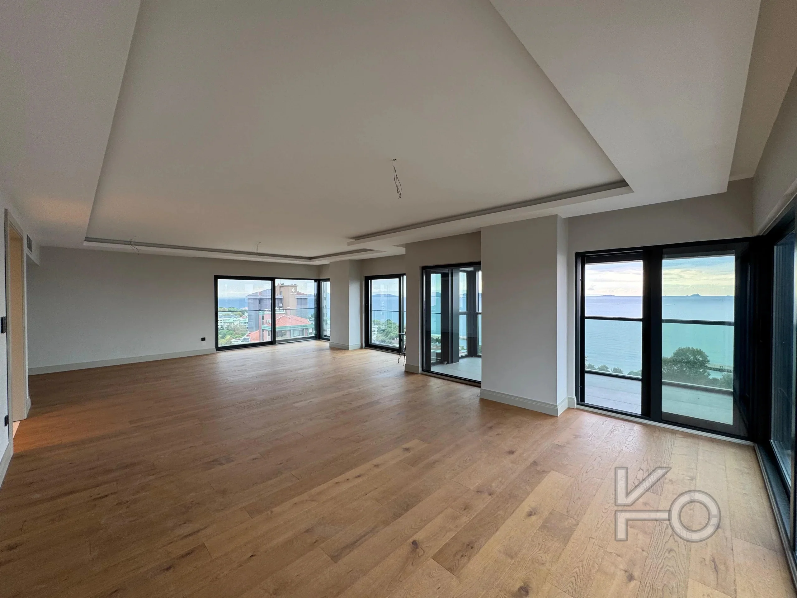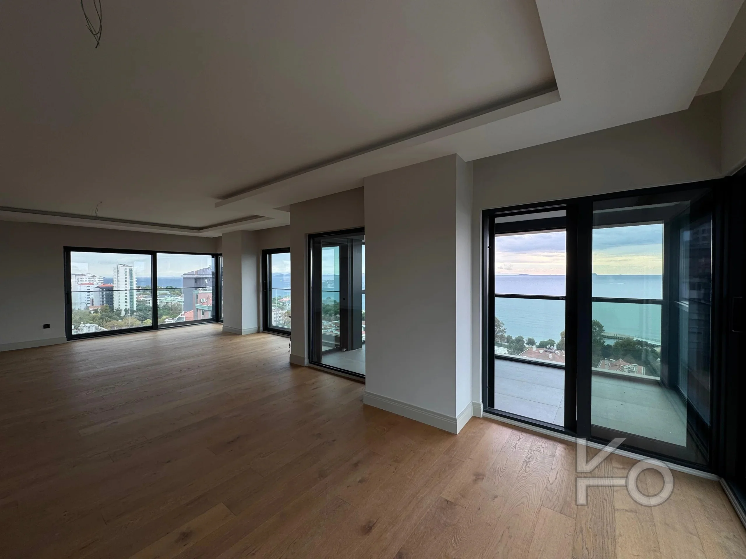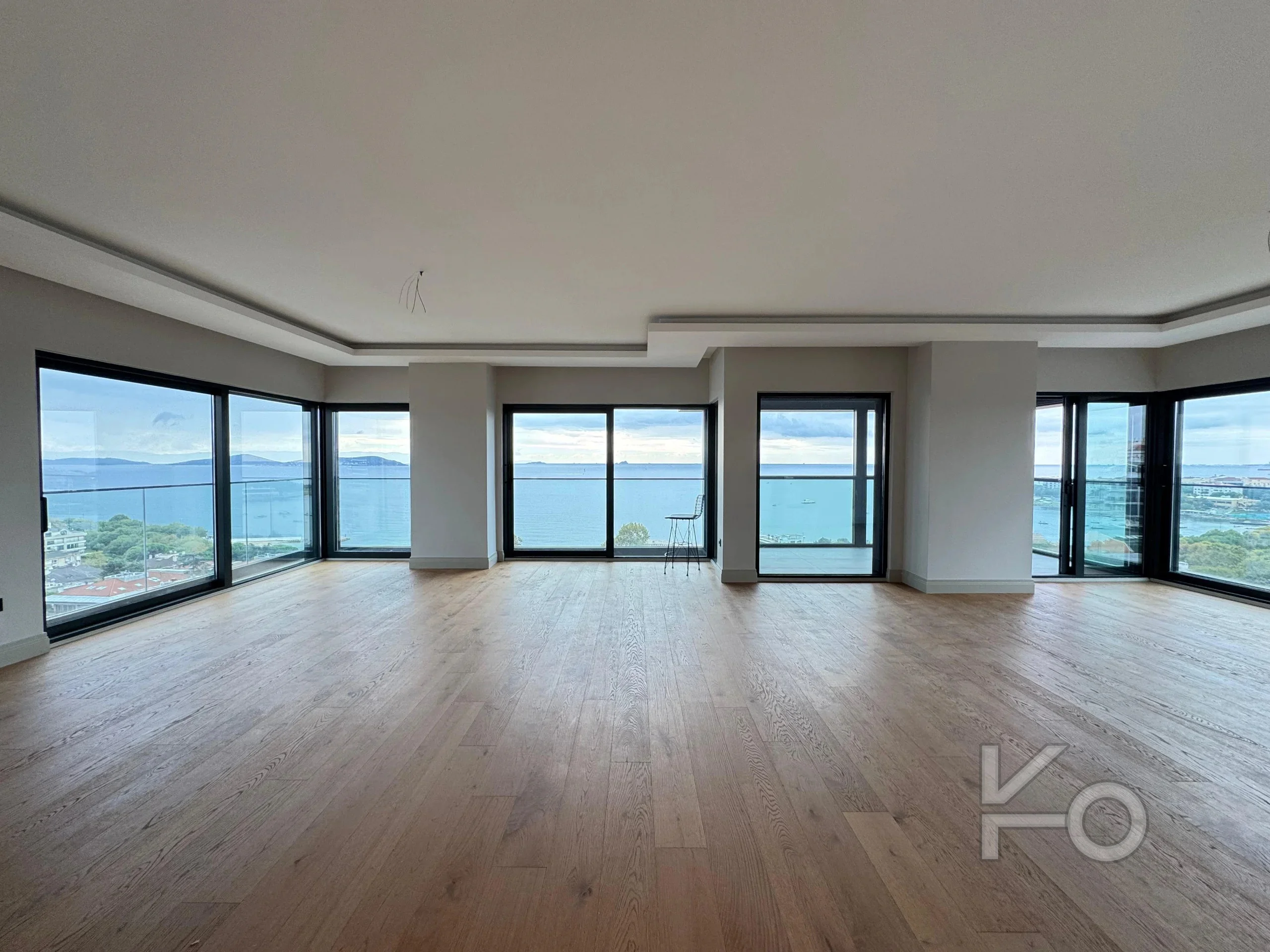 Toplam 265 m² brüt ve 205 m² net geniş yaşam alanına sahip bu **4+1** daire, her katta tek daire prensibiyle tasarlanmış, sakinlerine benzersiz bir mahremiyet ve huzur sunuyor. 14 katlı binanın 11. katında yer alan daire, dört cephesiyle günün her anı doğal ışık alırken, her odasından deniz ve şehir manzarasının keyfini çıkarma imkanı tanıyor. Henüz 1 yıllık olan bu sıfır bina, modern yaşamın tüm gerekliliklerini lüks detaylarla birleştiriyor. Kapalı mutfağında ankastre ürünler hazır beklerken, yerden ısıtma sistemi konforu en üst seviyeye taşıyor.